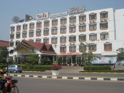 O quarto do hotel em Vientiane