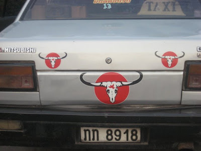 Esta a matrícula da viatura, um táxi bem especial com cornos e tudo !....